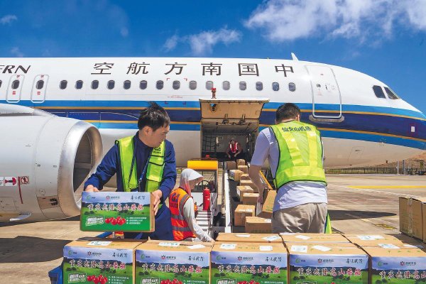 近日,4架滿載1500公斤新鮮番茄的無人機(jī)從重慶市武隆區(qū)雙河番茄基地起飛,10分鐘后平穩(wěn)抵達(dá)武隆仙女山機(jī)場,經(jīng)轉(zhuǎn)乘民航航班,2.5小時后直達(dá)北京,實現(xiàn)了高山農(nóng)產(chǎn)品從“枝頭鮮”到“餐桌鮮”的當(dāng)日達(dá),較傳統(tǒng)運輸時效提升3天,損耗率降低超30%。