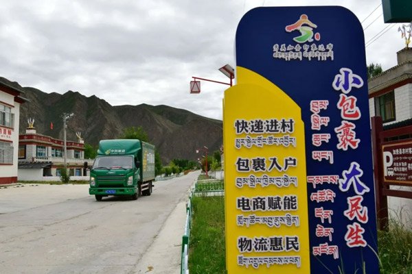 離開冷達鄉(xiāng)郵政所,采訪組繼續(xù)前行,不多時便抵達了加查縣人口最多的行政村——共康村。剛進村口,就看到了村委會門前那塊寫著“快遞進村、包裹入戶、電商賦能、物流惠民”的標牌,字里行間透著郵政服務(wù)與村民生活的緊密聯(lián)結(jié)。