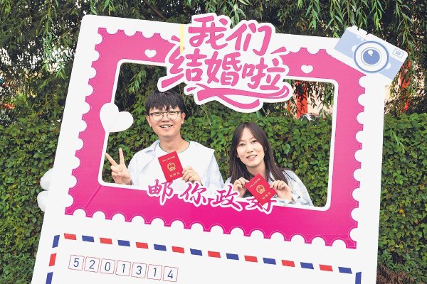 8月29日是七夕節(jié),云南省宜良縣郵政分公司聯(lián)合縣民政局在婚姻登記處共同策劃組織了一場(chǎng)別具特色的集體婚禮頒證活動(dòng),郵政“幸福驛站”成為新人們爭(zhēng)相拍照的浪漫地標(biāo)。