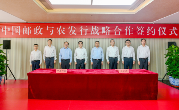9月16日,中國郵政集團有限公司與中國農(nóng)業(yè)發(fā)展銀行(以下簡稱農(nóng)發(fā)行)在中國郵政集團總部簽署戰(zhàn)略合作協(xié)議。中國郵政集團有限公司黨組書記、董事長劉愛力,黨組副書記、總經(jīng)理鄭國雨,與農(nóng)發(fā)行黨委書記、董事長湛東升,黨委副書記、行長張小東舉行工作會談,并共同見證簽約。中國郵政集團有限公司黨組成員、副總經(jīng)理王儉,農(nóng)發(fā)行黨委委員、副行長吳濤分別代表雙方簽署協(xié)議。雙方相關部門負責同志出席。