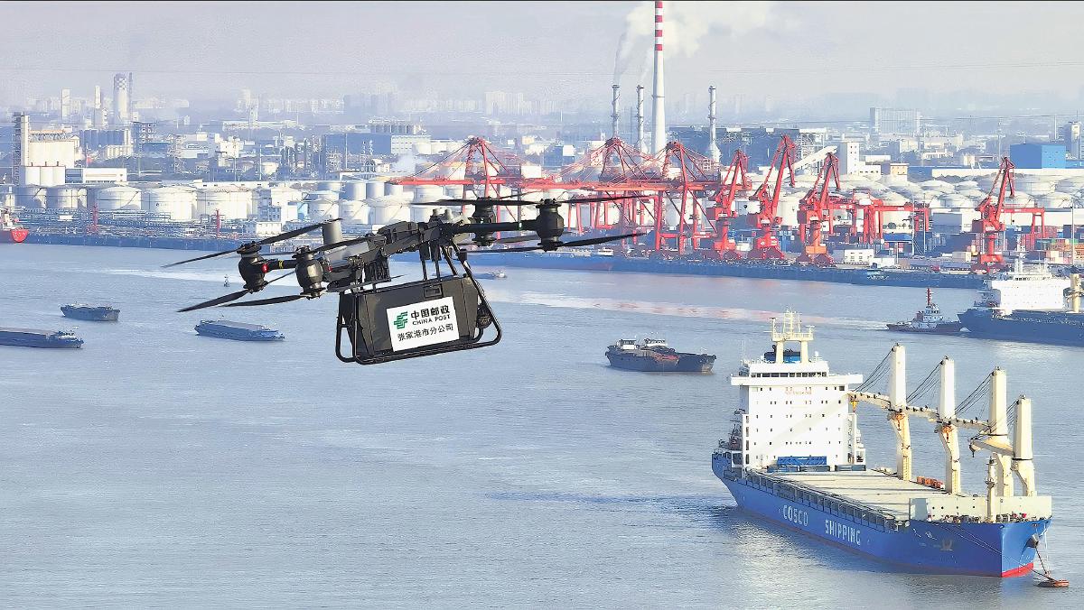9月18日,江蘇省張家港市冶金園,一架載有30公斤快遞包裹的無人機(jī)飛往水上郵政快遞綜合服務(wù)站,標(biāo)志著張家港首條跨長(zhǎng)江無人機(jī)郵路正式運(yùn)行。該郵路由張家港市郵政分公司聯(lián)合市海事局共同開通,通過“海事監(jiān)管+低空物流”融合模式,有效解決過往船員“購物難、取件難”的痛點(diǎn)。