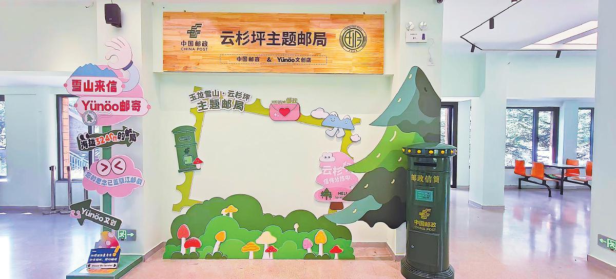 云南省麗江市玉龍雪山云杉坪主題郵局于今年9月12日亮相后,就吸引諸多游客到訪,國慶中秋假期更是人流如織。主題郵局宛如一顆璀璨的明珠,鑲嵌在海拔3240米的云杉坪索道下部站,背靠著巍峨壯麗的玉龍十三峰,仿佛雪山忠誠的守護者;面朝繁花似錦的高山草甸與靜謐神秘的原始云杉林,宛如置身一幅絕美的畫卷之中。