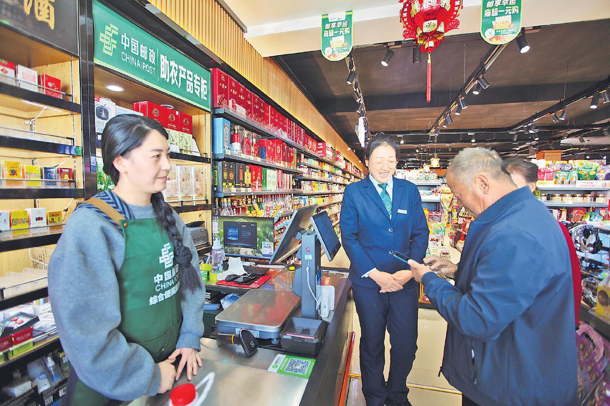 五原縣郵政分公司在“雙生態(tài)圈”打造中,攜手縣工業(yè)和信息化局,深度融入縣域商業(yè)體系建設(shè)項(xiàng)目,爭取政府補(bǔ)貼資金,選取全縣11個(gè)鄉(xiāng)鎮(zhèn)的11處商超,全部升級改造為郵政標(biāo)準(zhǔn)化綜合便民服務(wù)站點(diǎn)。采訪組在銀定圖鎮(zhèn)福多樂天天惠超市看到,面積達(dá)425平方米的超市寬敞明亮、顧客盈門,貨品琳瑯滿目,“天天3·15 放心郵樂購”的標(biāo)志醒目,快遞存放處擺滿了待取的包裹?!碍h(huán)境好、人氣旺,營收比改造前增加了近三成?!背欣习謇詈葡残︻侀_,特意將采訪組領(lǐng)到新建的冷庫。冷庫里擺滿了牛羊肉等生鮮產(chǎn)品,他說再也不用為存放問題發(fā)愁了,村民隨時(shí)需要,自己隨時(shí)有貨。