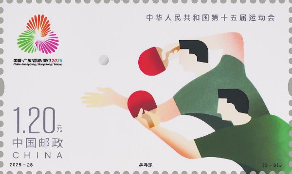 第十五屆全運(yùn)會(huì)是粵港澳三地承辦的我國規(guī)模最大、水平最高、影響最廣的綜合性運(yùn)動(dòng)會(huì),也是香港、澳門首次承辦全國運(yùn)動(dòng)會(huì)。該套郵票由內(nèi)地、港、澳三地設(shè)計(jì)師韓家英、陳幼堅(jiān)、歐俊軒設(shè)計(jì)。第1枚郵票表現(xiàn)內(nèi)容為花樣游泳,郵票圖案以躍動(dòng)的剪影表現(xiàn)運(yùn)動(dòng)員的優(yōu)雅身姿,力與美相生共舞,以獨(dú)特的視角展現(xiàn)出運(yùn)動(dòng)員在水中的靈動(dòng)瞬間。第2枚郵票表現(xiàn)內(nèi)容為擊劍,郵票圖案以飛動(dòng)的線條表現(xiàn)運(yùn)動(dòng)員迅猛矯健的身姿,剛與柔交織碰撞,以極簡的構(gòu)圖展現(xiàn)出運(yùn)動(dòng)員激烈的對(duì)抗場景。第3枚郵票表現(xiàn)內(nèi)容為乒乓球,郵票圖案以鮮明簡練的色塊表現(xiàn)運(yùn)動(dòng)員蓄勢待發(fā)的專注之姿,強(qiáng)與韌相融并濟(jì),以幾何化、概括化的現(xiàn)代極簡插畫造型,展現(xiàn)出運(yùn)動(dòng)員發(fā)球瞬間的氣勢和張力,營造出緊張的比賽氛圍。