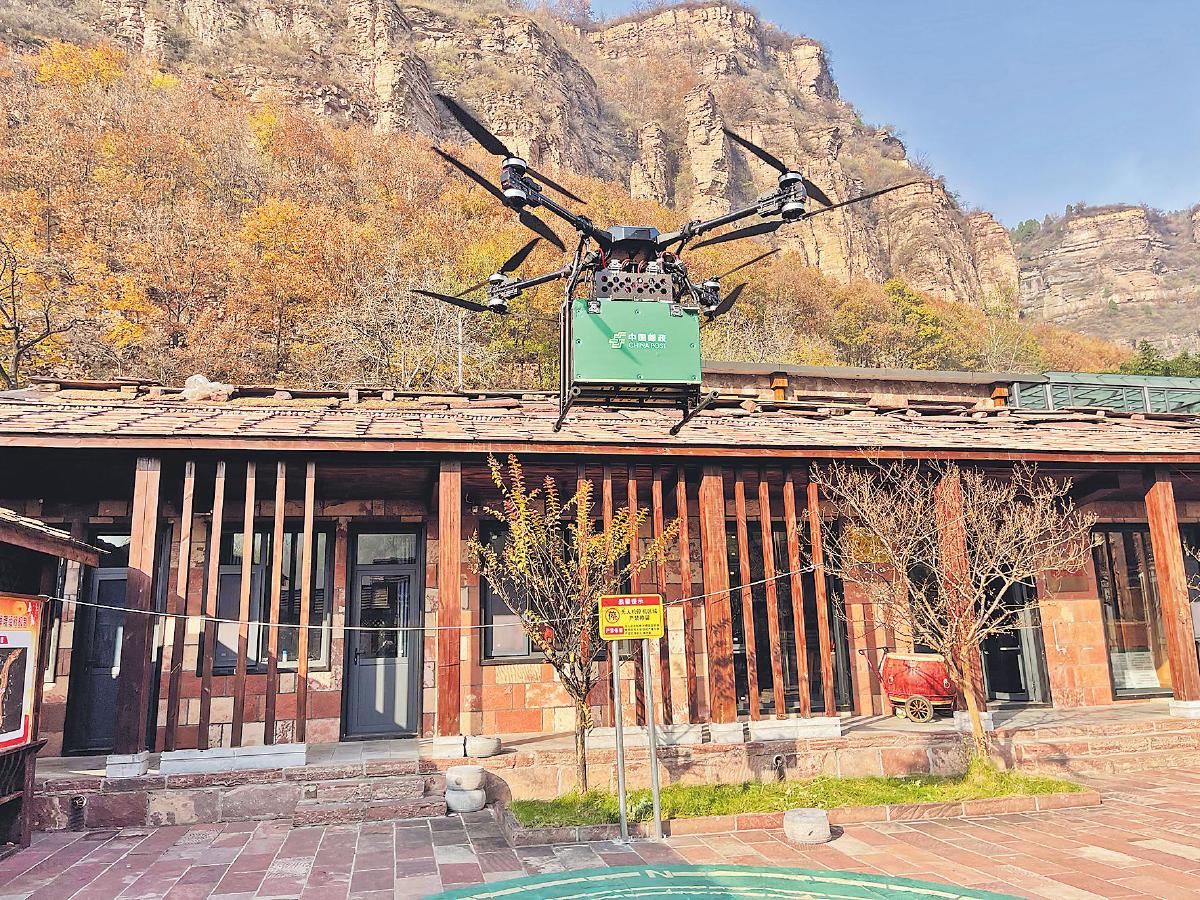 郵政無(wú)人機(jī)載滿郵件從高家臺(tái)村起飛。