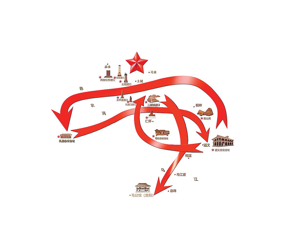 唐云云介紹,將紅軍“一渡赤水”(遵義—土城—扎西)、“二渡赤水”(扎西—太平渡—婁山關(guān)—遵義)、“三渡赤水”(遵義—茍壩—茅臺(tái)—川南)、“四渡赤水”(二郎灘—太平渡—貴陽(yáng))的迂回路線在地圖上連線,驚訝地發(fā)現(xiàn)其天然構(gòu)成了一個(gè)“安”字的輪廓。“我們?cè)凇病诸^上加了一顆五角星,這既是革命精神的象征,也含平安的寓意。希望游客看到時(shí),能想到當(dāng)下的幸福生活來(lái)之不易。”唐云云說(shuō)。