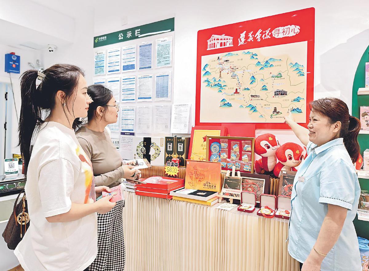在丙安郵局,游客可以提筆手寫(xiě)“戰(zhàn)地家書(shū)”,蓋上丙安郵局郵戳,投入復(fù)原的“紅軍郵筒”,體驗(yàn)“家書(shū)抵萬(wàn)金”的深情。郵局還推出“丹霞郵禮”系列文創(chuàng)產(chǎn)品,將赤水丹霞地貌與非遺竹藝巧妙結(jié)合。