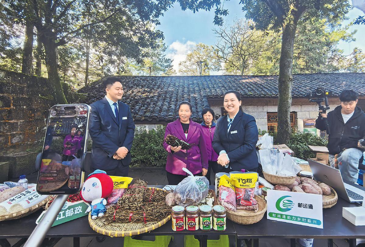 近日,在重慶市綦江區(qū)中壩村村委會的小院里,郵政工作人員與村民圍在擺滿干辣椒、干貨、特色醬料的展臺前,對著手機(jī)直播鏡頭熱情推介當(dāng)?shù)睾梦铩T谌型七M(jìn)“郵運(yùn)通”工作的助力下,綦江區(qū)郵政分公司開通“郵車到我家”專線,并在今年4月聯(lián)合區(qū)商務(wù)委構(gòu)建“產(chǎn)地首發(fā)—冷鏈運(yùn)輸—終端配送”全鏈條服務(wù)體系,實現(xiàn)山鄉(xiāng)特產(chǎn)“當(dāng)日采收、次日達(dá)城”,為農(nóng)村電商發(fā)展提供有力支撐。