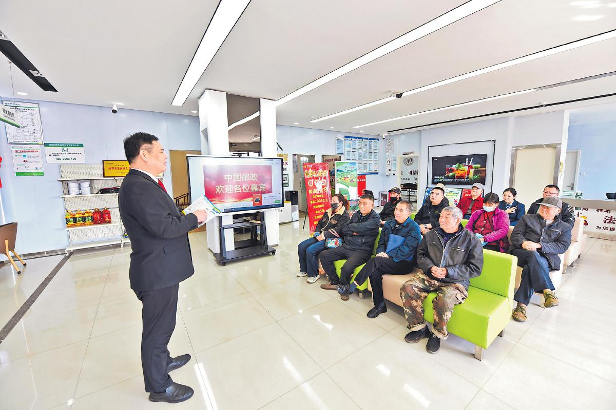 10月20日,沂源縣人民法院東里法庭負責人齊元林到法郵服務站給農(nóng)民普法。