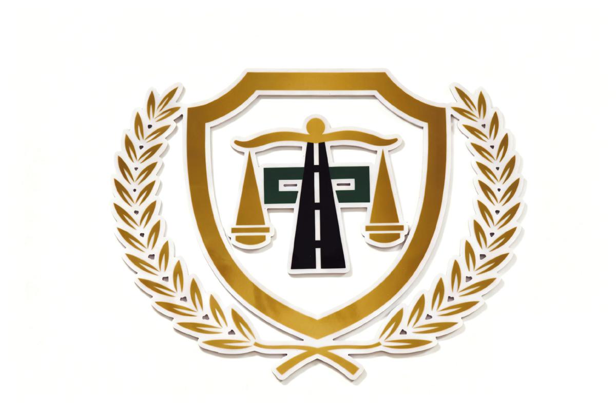法郵服務站的專屬標識以盾牌和麥穗為底,融合了法院象征公平的天平標志與郵政標志性的綠色。