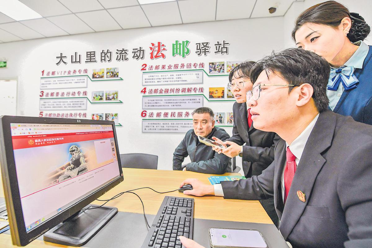 張家坡,山東省淄博市沂源縣東南30公里處的小鎮(zhèn)。鎮(zhèn)上的張家坡郵政支局里,藏著一項不尋常的服務——法郵服務站的司法服務。這是山東省高級人民法院與山東省郵政分公司攜手打造的“楓橋式”基層治理新樣板,也是司法服務“貼地而行”的生動實踐。群眾在“家門口”的郵局就能進行立案、咨詢、調(diào)解,甚至參與庭審;法律不再遙不可及,而是“一路有法、‘沂’路‘郵法’”。