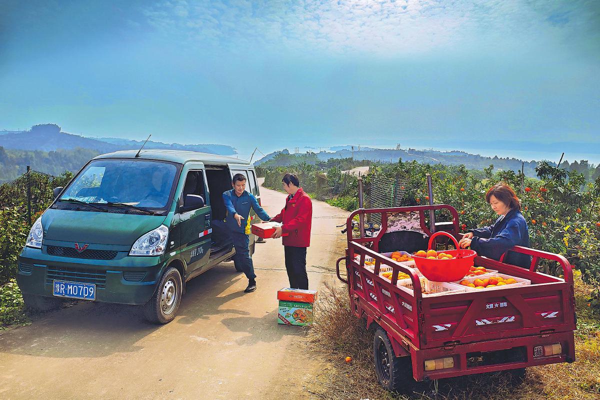 初冬時(shí)節(jié),河南省南陽市淅川縣倉房鎮(zhèn)柑橘基地內(nèi),金黃的果實(shí)掛滿枝頭。南陽市郵政分公司的員工與果農(nóng)忙碌著采摘、封裝,一輛輛綠色郵車整裝待發(fā),將新鮮的“渠首甜”送往全國各地。