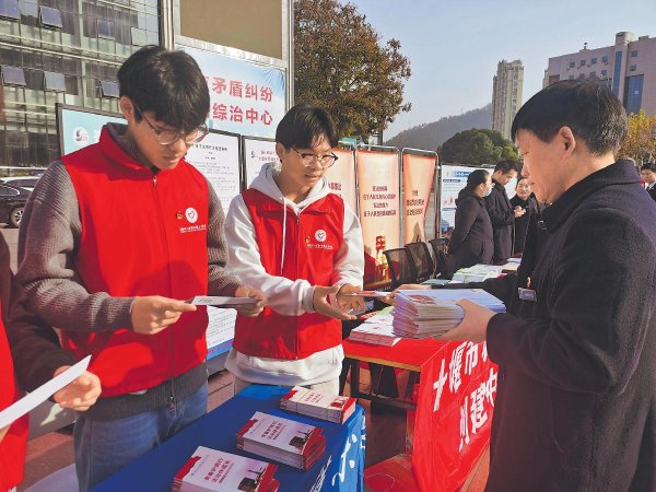 12月1日,2025年湖北省十堰市第八個(gè)“憲法宣傳周”啟動(dòng)儀式暨集中法治宣傳活動(dòng)在該市人民廣場舉行。十堰市郵政分公司將法律法規(guī)宣傳與郵政業(yè)務(wù)深度融合,通過發(fā)放郵資紀(jì)念封、加蓋紀(jì)念戳、現(xiàn)場答疑解惑等方式,向來往群眾普及法律法規(guī)知識(shí),助力營造全社會(huì)尊法學(xué)法守法用法的良好氛圍。圖為郵政工作人員向現(xiàn)場志愿者發(fā)放紀(jì)念封。