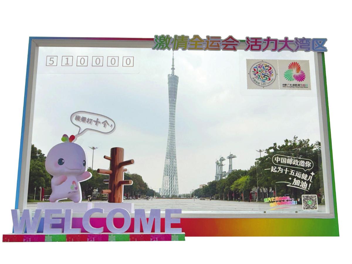 設(shè)立在廣州塔廣場的“全運(yùn)郵框”,供市民和游客拍照打卡。