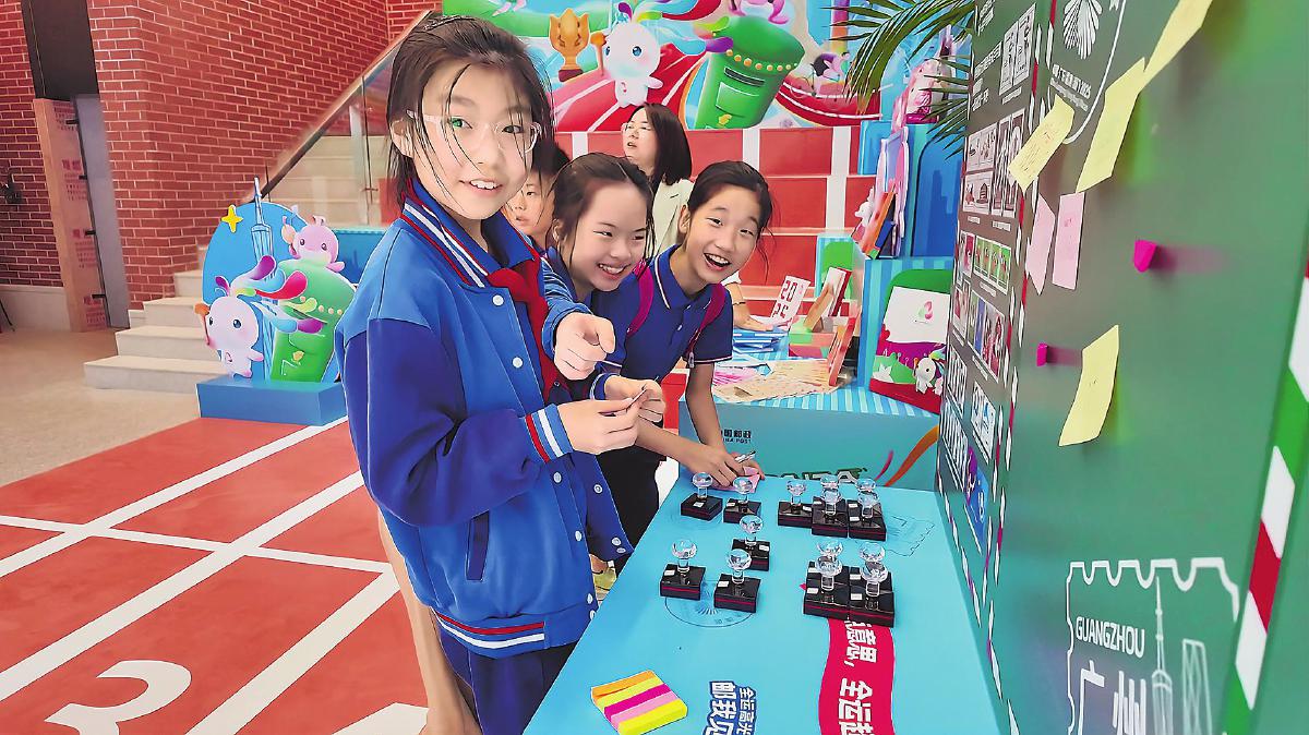 在全運(yùn)快閃郵局,小朋友們在蓋章打卡。