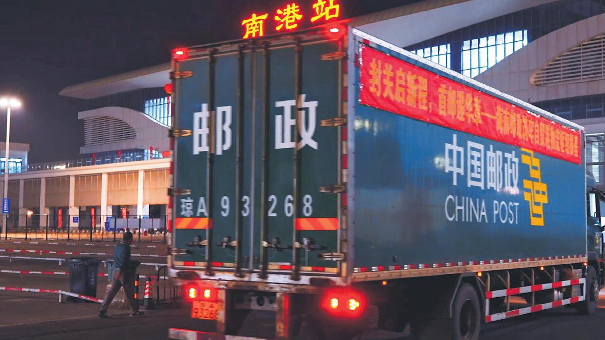 12月18日零時,海南自由貿(mào)易港全島封關(guān)運作全面啟動。海南郵政作為物流服務體系的重要一環(huán),全力保障封關(guān)運作后郵件出島順利暢通。零時28分,海南郵政首趟出島的郵車滿載免稅品郵件,通過“二線口岸”(貨運)集中查驗場,駛?cè)肽细鄞a頭,隨后登上封關(guān)后首趟出島輪渡“粵海鐵3號”。1時15分,輪渡順利離港出發(fā),標志著海南自貿(mào)港封關(guān)運作后,海南郵政物流通道順利貫通。
