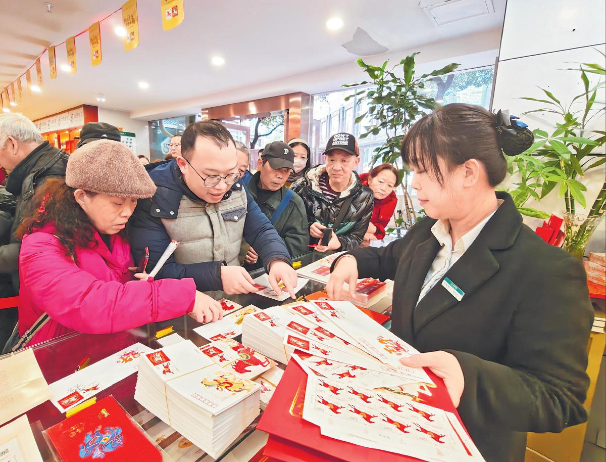 1月5日,《丙午年》特種郵票全國發(fā)行,以“馳躍宏圖、萬駿臻福”的文化意象,將傳統(tǒng)生肖底蘊與時代活力傳遍全國。各地郵政營業(yè)網(wǎng)點聯(lián)動構(gòu)建生肖文化傳播矩陣,讓這套承載奮進(jìn)寓意與吉祥期許的“國家名片”,成為“十五五”開局之際的全國性文化熱點。老郵迷品鑒方寸匠心,年輕人追捧文創(chuàng)潮流,掀起全民集藏?zé)岢薄D為貴州省貴陽市噴水池郵政營業(yè)所工作人員熱情地向市民講解馬年生肖郵票的設(shè)計理念與印制特色。此外,該營業(yè)所還特別準(zhǔn)備了開陽馬場生肖原地戳等特色紀(jì)念郵戳,切實滿足廣大郵迷需求。