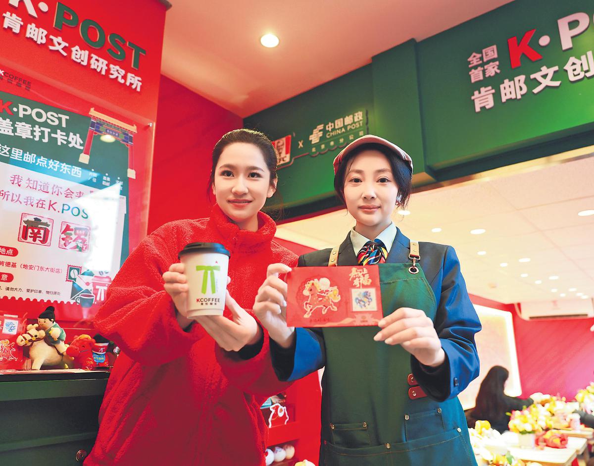 1月12日,北京郵政與北京肯德基跨界合作的全國首家“K·POST 肯郵文創(chuàng)研究所”在北京南鑼鼓巷開業(yè)。店內(nèi)采用綠與紅的撞色設計,極具視覺張力,全國各地游客在這里不僅能品嘗到肯德基的美食,還能體驗郵政文化的獨特魅力。門店獨家推出融合北京元素與郵政文化的明信片、紀念戳、毛絨玩具等文創(chuàng)產(chǎn)品,讓書信的韻味在潮流場景中回歸,著力打造兼具文化體驗、社交互動與實用功能的“微型文旅綜合體”。