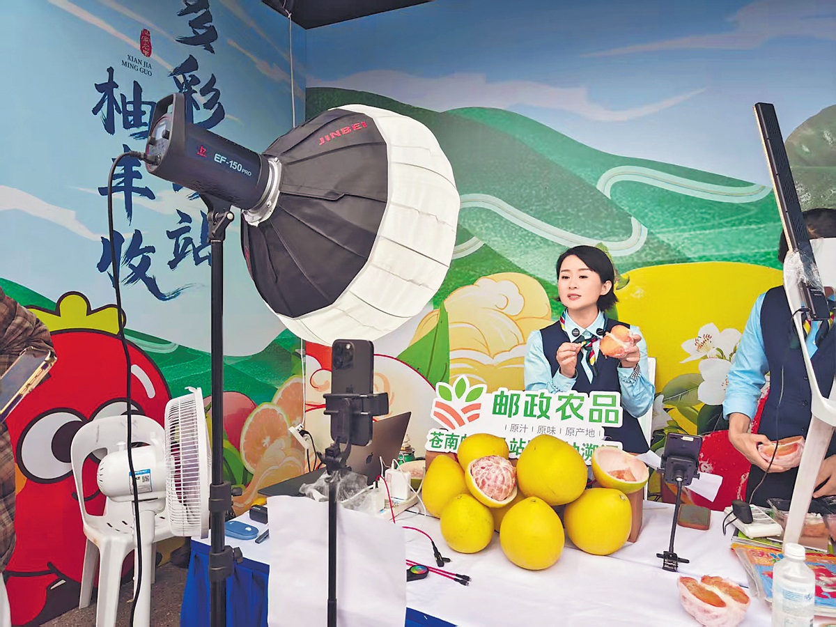 “這顆掛果半年的柚子,吃透了四季風(fēng)水,浸潤了山川靈秀,滋陰降火還開胃?,F(xiàn)在下單,次日就能嘗到新鮮美味!”鏡頭前,郵政主播熱情帶貨,一邊直觀展示柚子金黃飽滿的品相,一邊詳細(xì)講解其營養(yǎng)價值與食用功效。直播間迅速聚集大批觀眾,下單熱潮持續(xù)攀升。蒼南郵政自2025年12月19日開啟每日連播以來,已累計直播90余場次、時長140多小時,吸引3.2萬人次觀看,助銷成效顯著。