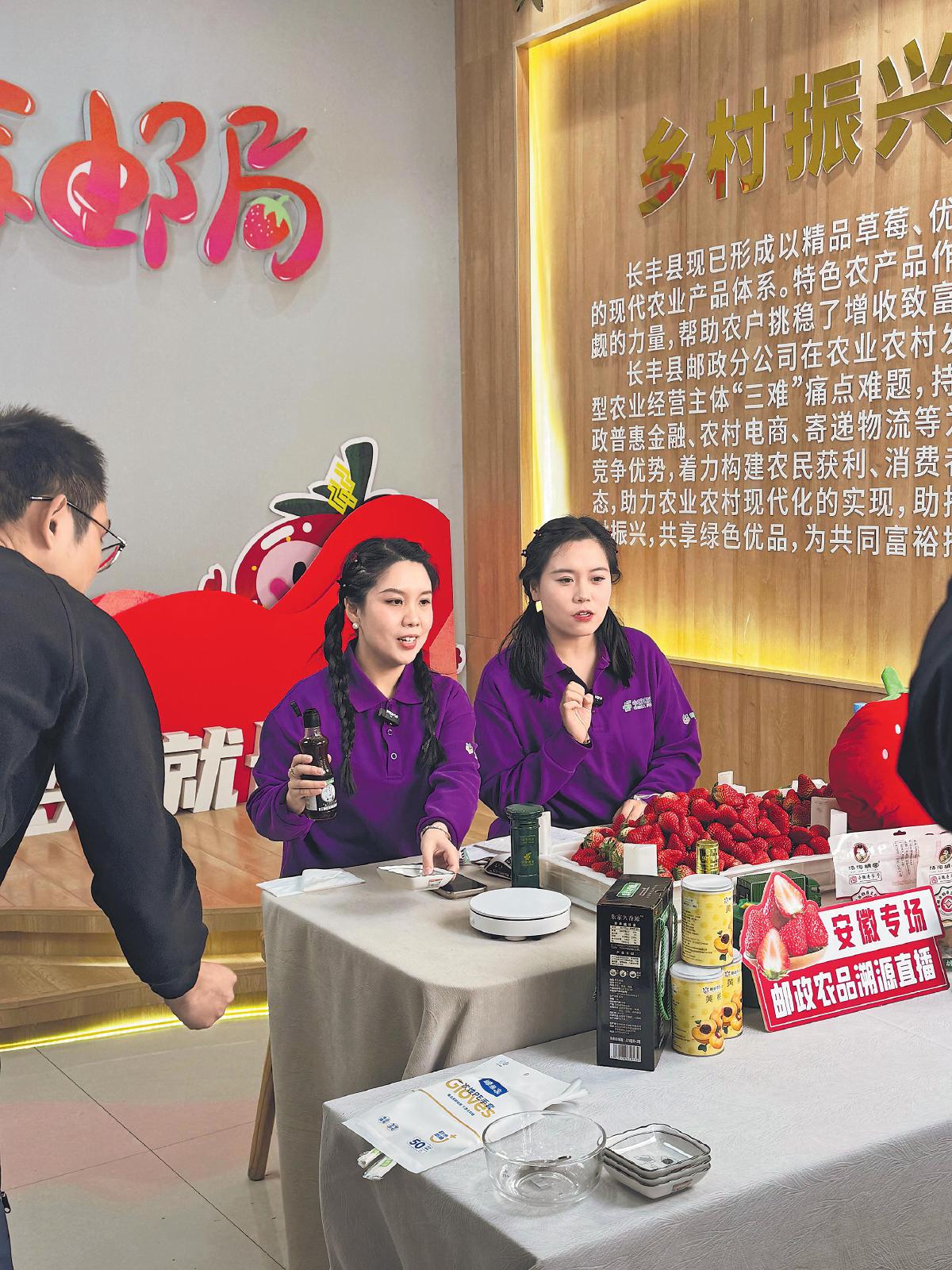 合肥郵政開展草莓溯源直播活動。□常馨尹 攝