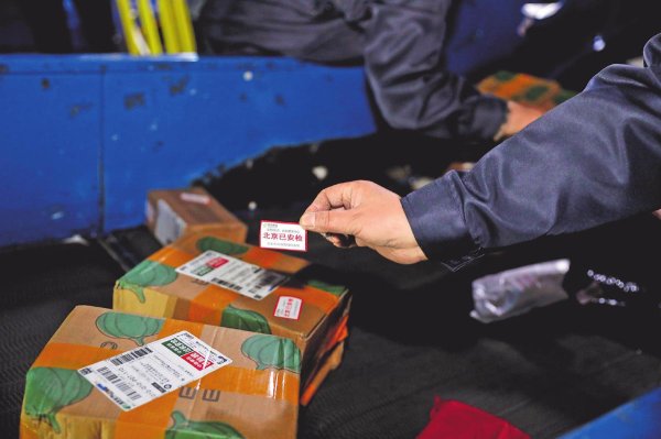 3月2日,北京郵政工作人員為快件粘貼“北京已安檢”標(biāo)識(shí),嚴(yán)格落實(shí)寄遞安檢措施,筑牢全國兩會(huì)期間寄遞渠道安全防線。