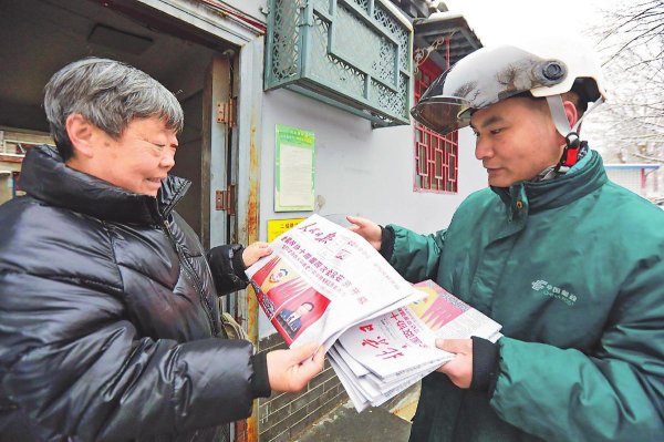 3月5日9時(shí)30分,北京東四郵政支局投遞員送達(dá)當(dāng)日《人民日?qǐng)?bào)》。