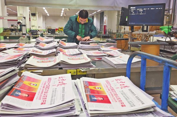 3月5日清晨,首批刊載兩會(huì)報(bào)道的黨報(bào)運(yùn)抵發(fā)行中心,郵政工作人員爭分奪秒開展分揀作業(yè),確保兩會(huì)聲音第一時(shí)間傳遞到千家萬戶。