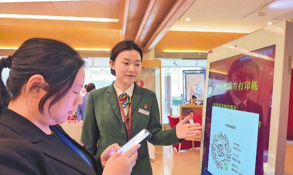 3月6日,兩會(huì)駐地,郵政工作人員指導(dǎo)與會(huì)人員使用自助明信片打印機(jī),將履職瞬間定格為專屬紀(jì)念。