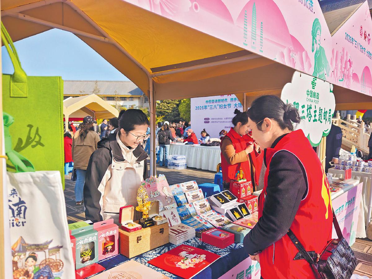 活動現(xiàn)場,主題郵局展臺前人氣滿滿,獨具特色的三塔系列特色明信片、大鵬金翅鳥非遺文創(chuàng)等郵品吸引了眾多客戶駐足觀賞、挑選購買;同時,現(xiàn)場還提供紀念戳加蓋、明信片手寫寄遞等“一站式”服務(wù),讓大家既能挑選心儀郵品,又能沉浸式體驗郵政文化,成為集市中一道溫馨而獨特的風(fēng)景。