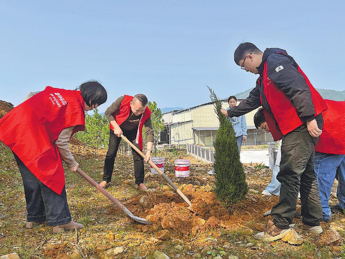 重慶市南川區(qū)郵政分公司黨總支聯(lián)合團區(qū)委、水江鎮(zhèn)黨委開展黨建共建活動,組織黨團員志愿者走進下樂村,開展春季義務植樹。大家共栽種桃樹、櫻花樹300棵,踐行了綠色發(fā)展理念,生動展現(xiàn)了“綠色郵政”的良好形象?!踮w娟 攝影報道