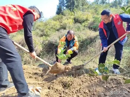 在線下,3月12日,江西省郵政分公司直屬機關黨委、團委聯(lián)合開展“厚植綠色底蘊 傳承紅色精神”活動。150名機關黨員、團員青年分工協(xié)作,揮鍬鏟土、培土圍堰、提水澆灌,相繼種下橘子、桃樹、石榴等70余株苗木。迎風挺立的新苗,為初春的南昌增添了濃濃生機。與此同時,各市、縣郵政分公司也同步掀起義務植樹熱潮。據(jù)統(tǒng)計,2026年全省郵政累計開展線下植樹活動76場,2139人次投身其中,共栽種樹苗4410株。