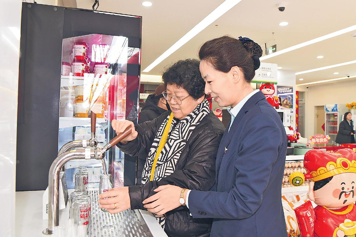 客戶在工作人員指引下接牛奶。